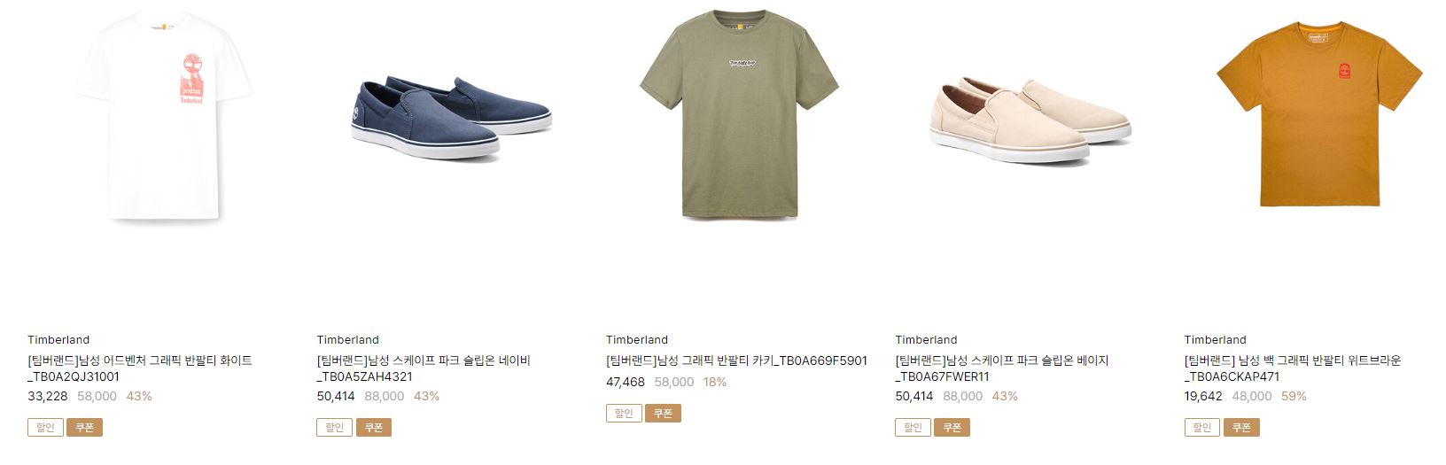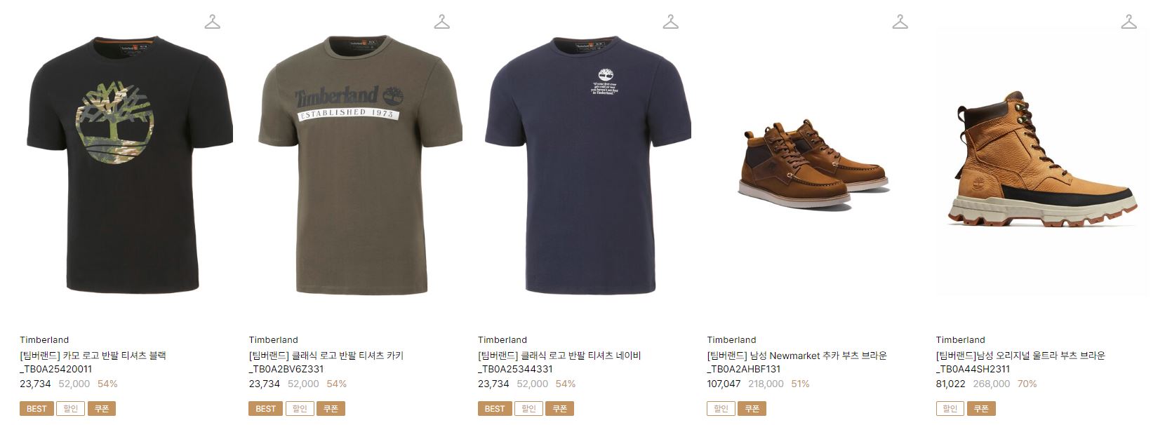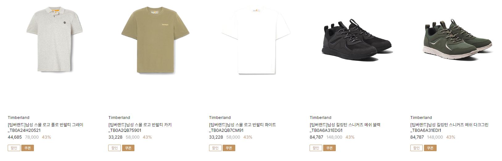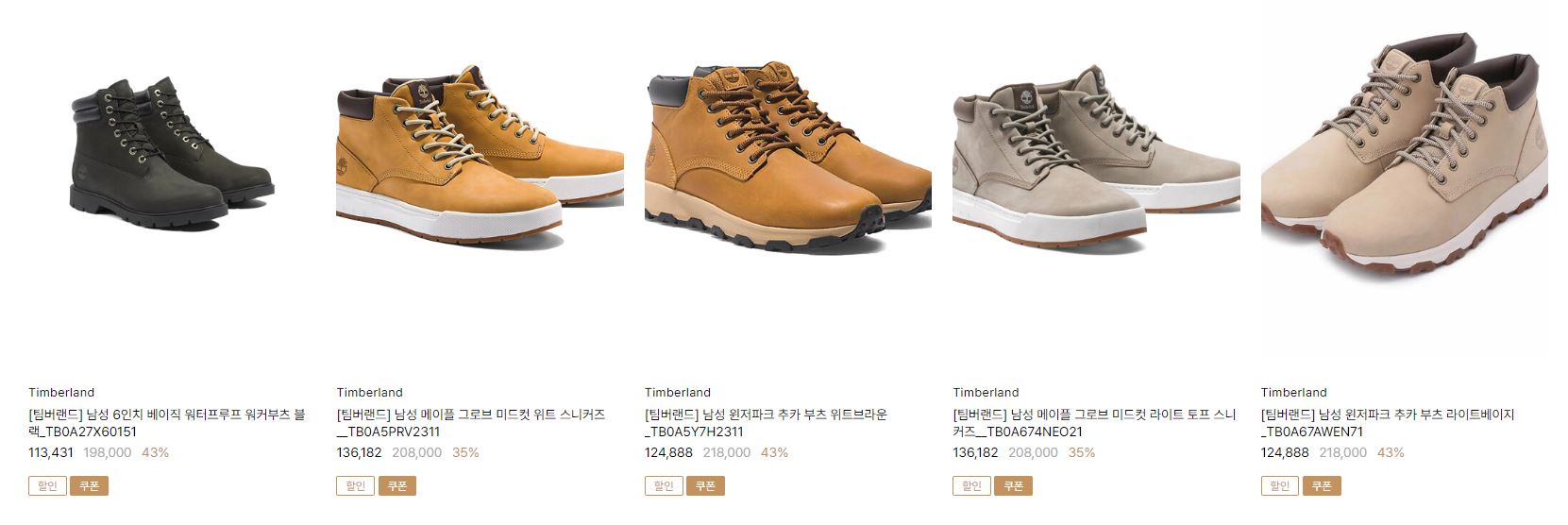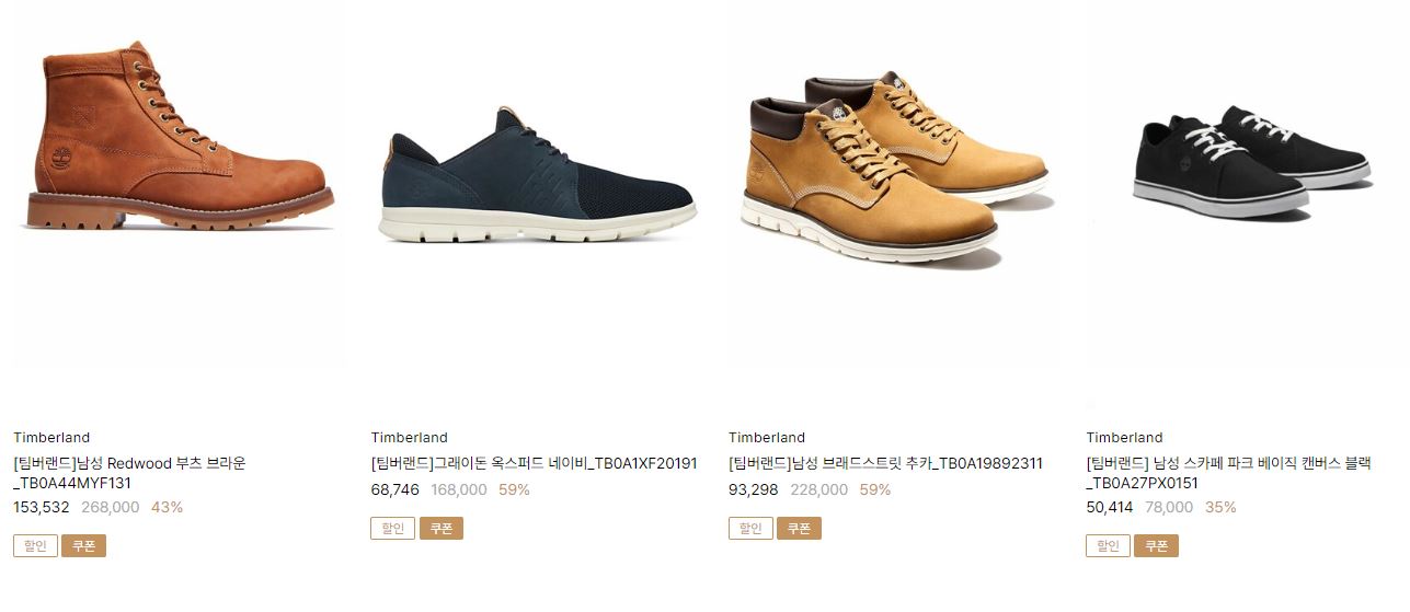 팀버랜드 다양한 제품을 할인 판매하네요.