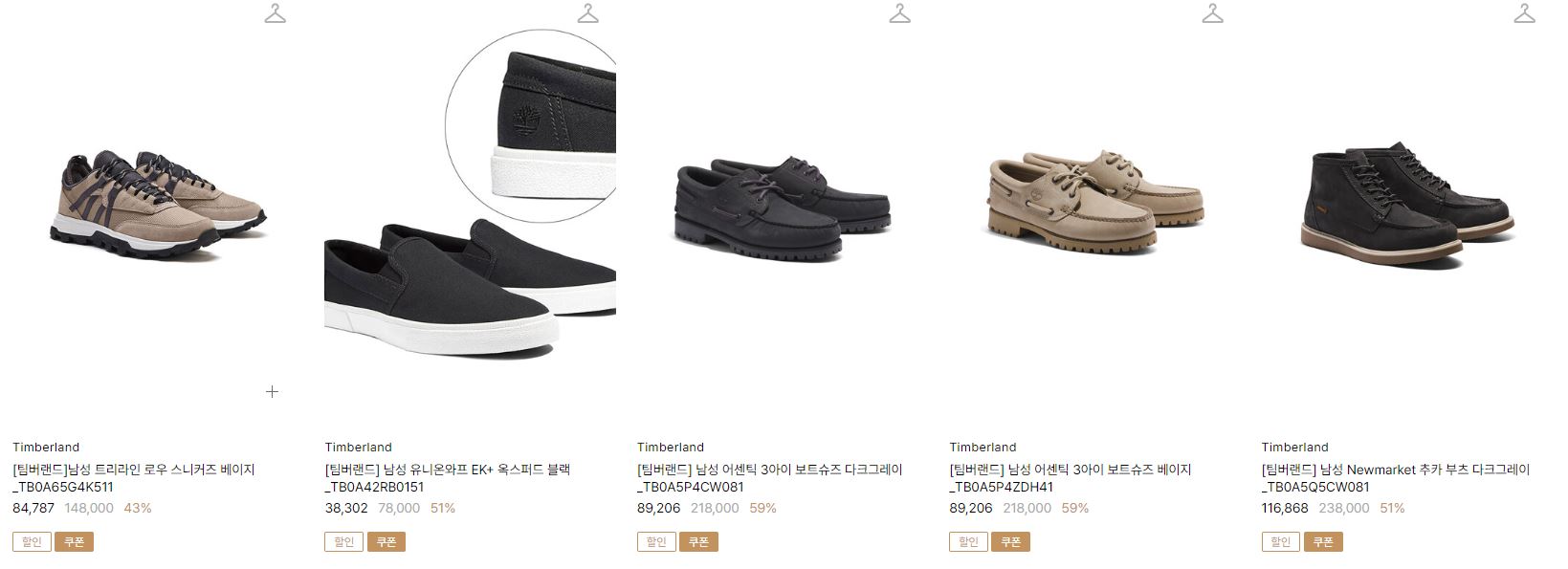 팀버랜드 다양한 제품을 할인 판매하네요.