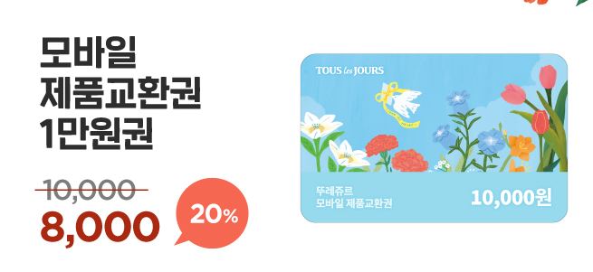뚜레쥬르 모바일 제품교환권 20% 할인 정보 포스팅입니다.
