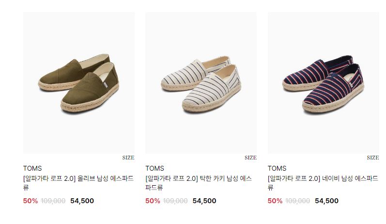탐스 다양한 제품을 할인 판매하네요.