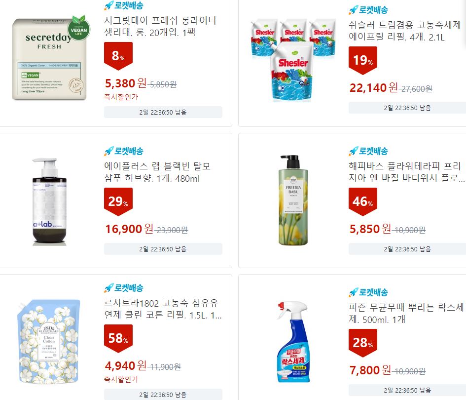 할인 품목 : 바디워시, 샴푸, 치약 등