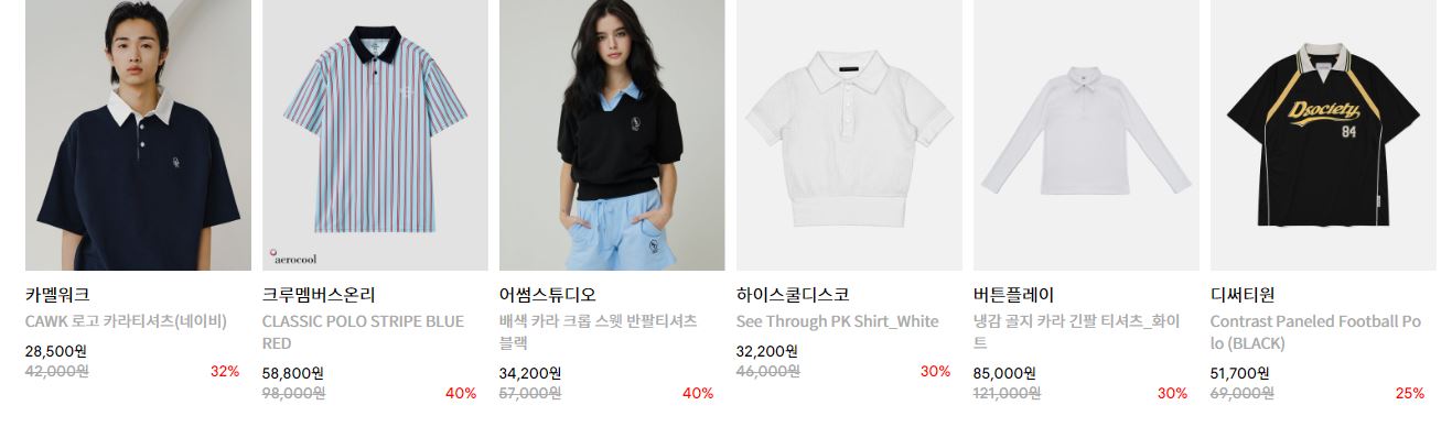 할인 품목 : 티셔츠, 팬츠, 신발 등