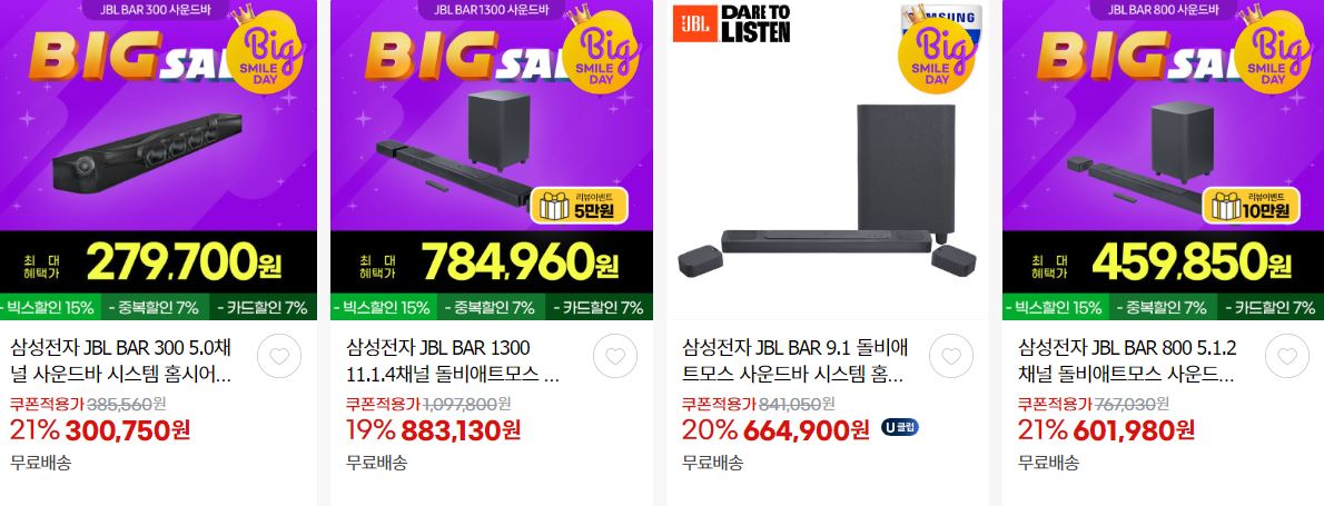 할인 품목 : 사운드바, 헤드셋 등