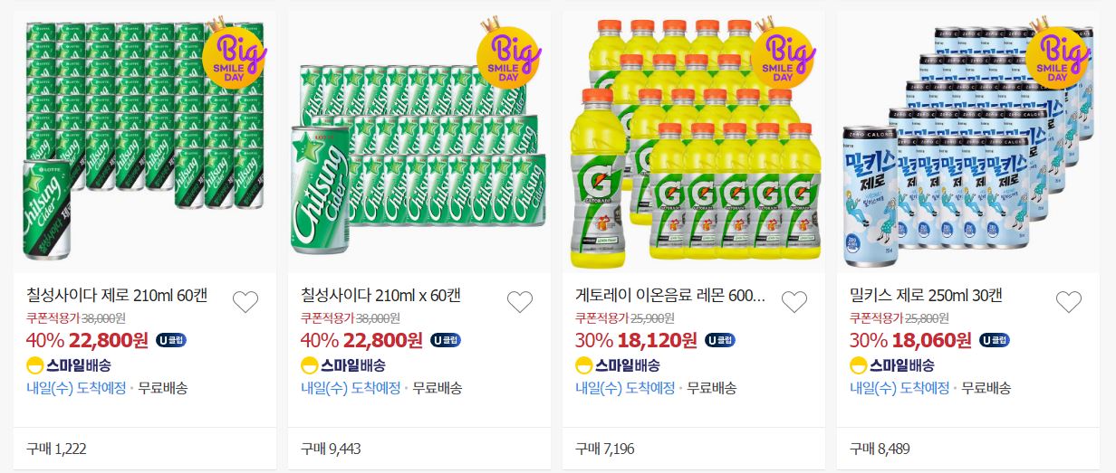 롯데칠성음료 다양한 제품을 할인 판매하네요.