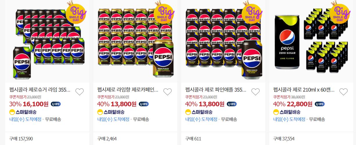 할인 품목 : 펩시, 칠성사이다, 커피 등