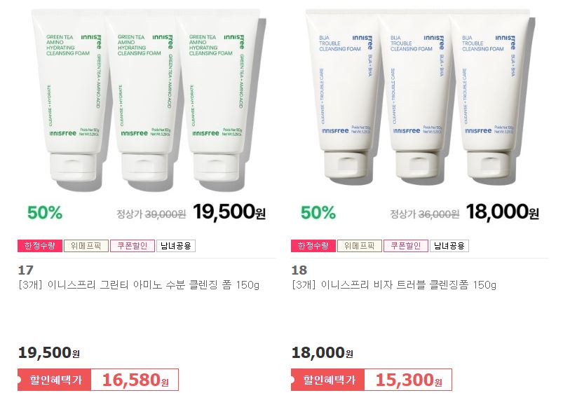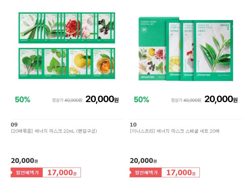 이니스프리 다양한 제품을 할인 판매하네요.