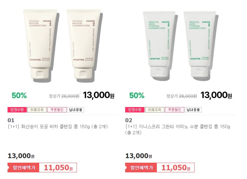 할인 품목 : 클렌징 폼, 마스크, 수딩젤 등