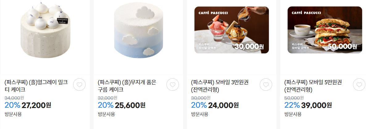 할인 브랜드 : 올리브영, 파스쿠찌 등