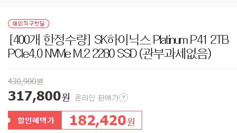 SK하이닉스 Platinum P41 2TB PCIe4.0 NVMe M.2 2280 SSD 할인 정보 [링크]