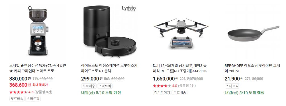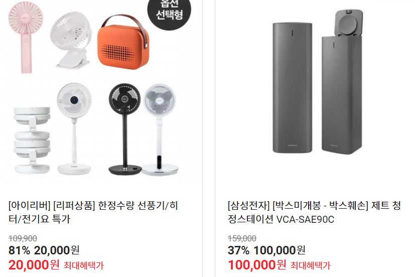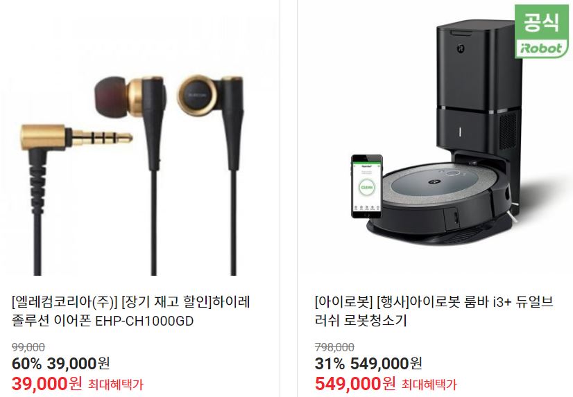 할인 품목 : 이어폰, 로봇청소기 등