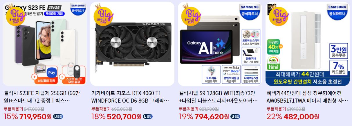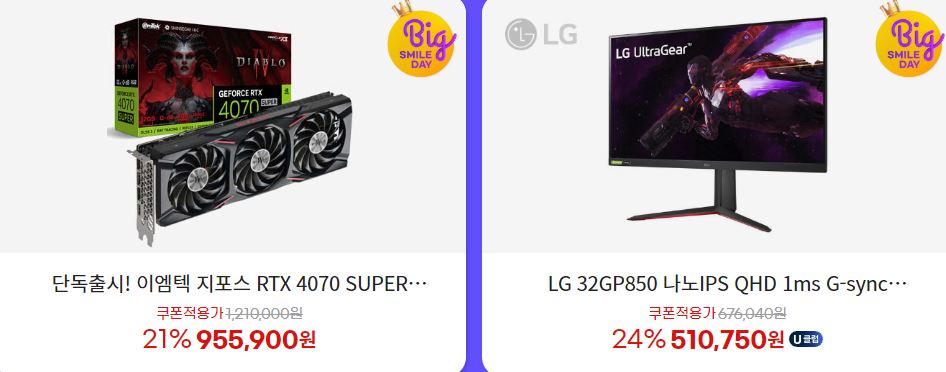 할인 품목 : 그래픽카드, 모니터 등