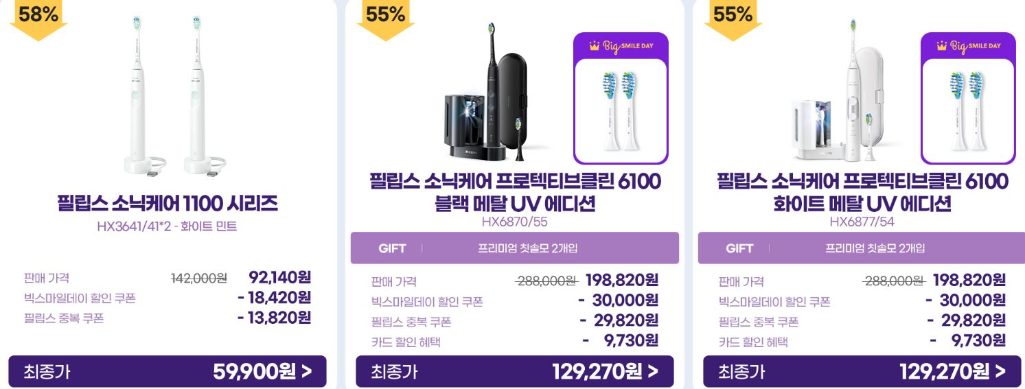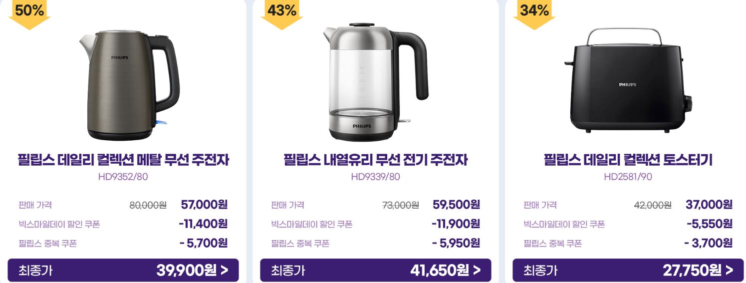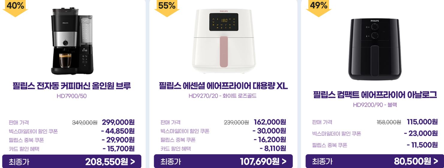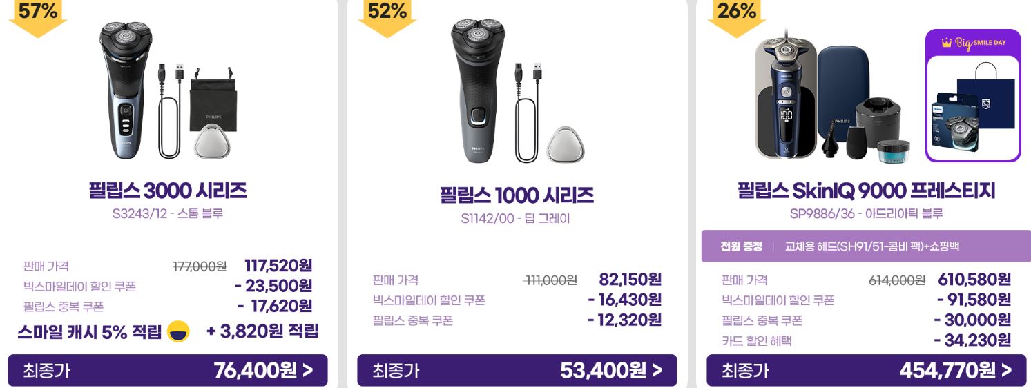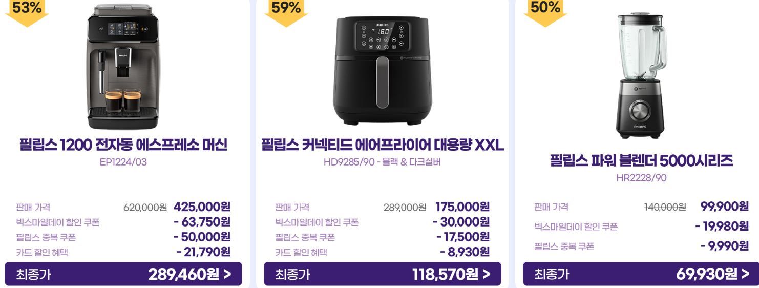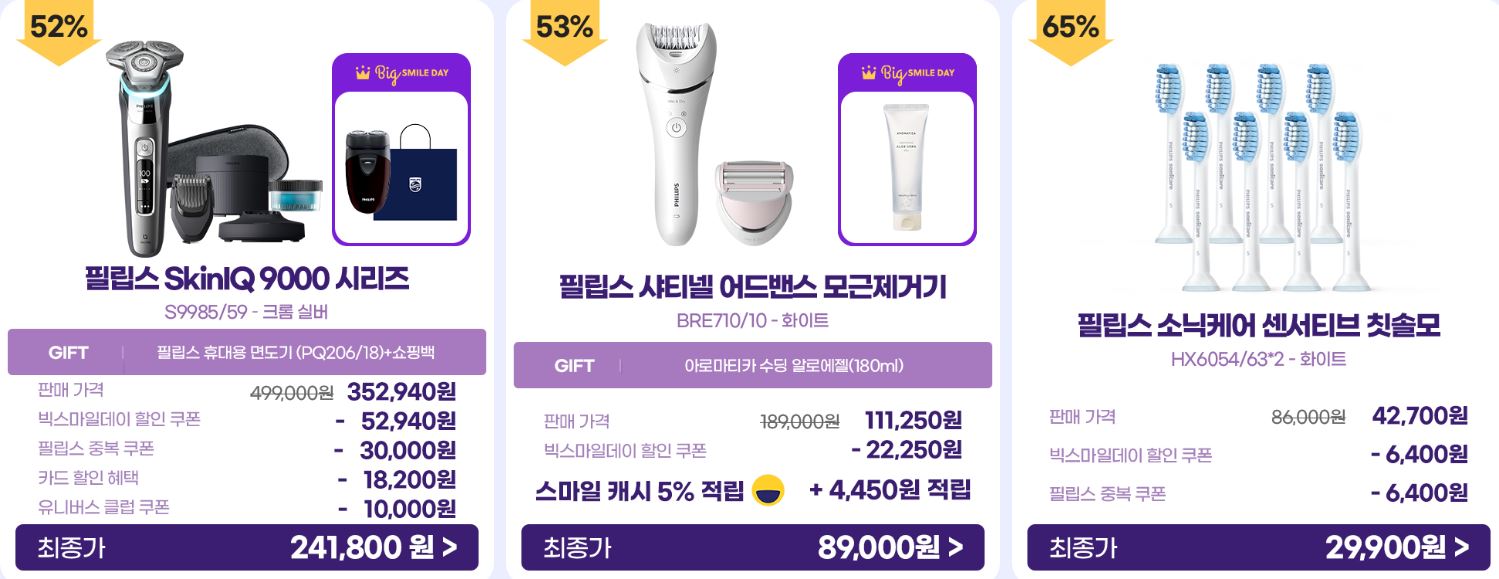 할인 품목 : 면도기, 에어프라이어, 커피머신 등