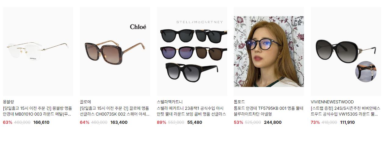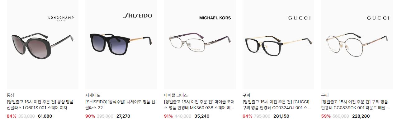 할인 품목 : 선글라스, 안경테