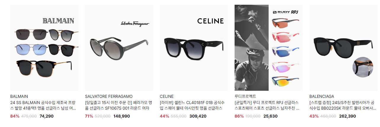 할인 품목 : 선글라스, 안경테