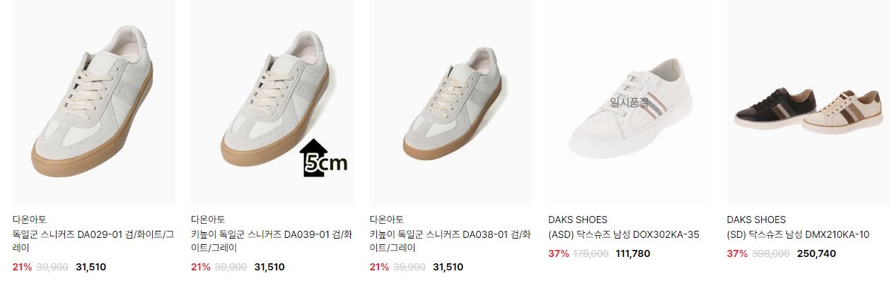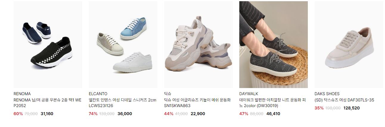 할인 품목 : 운동화, 구두 등