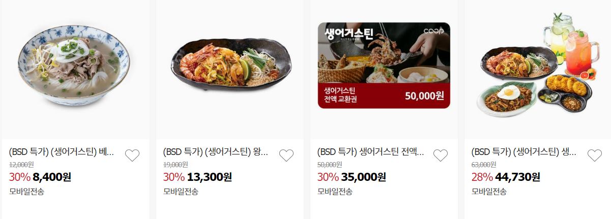 할인 브랜드 : 버거킹, 파스쿠찌 등