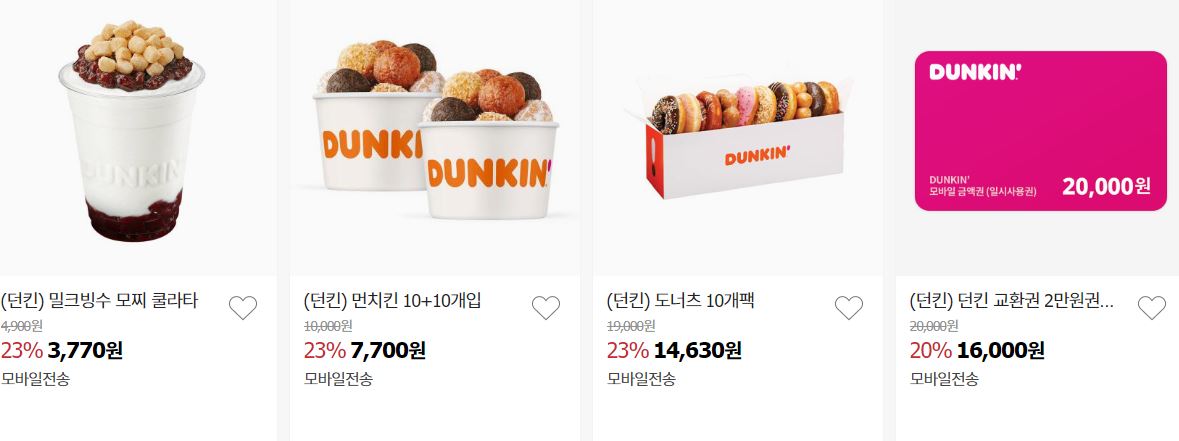 할인 브랜드 : 버거킹, 파스쿠찌 등