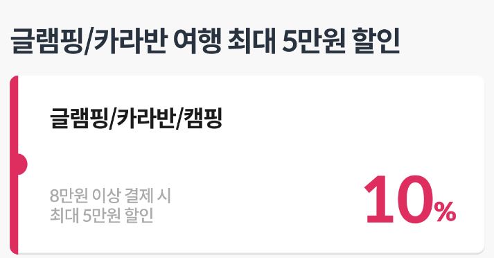 할인 품목 : 숙박업체, 기차, 렌터카 등