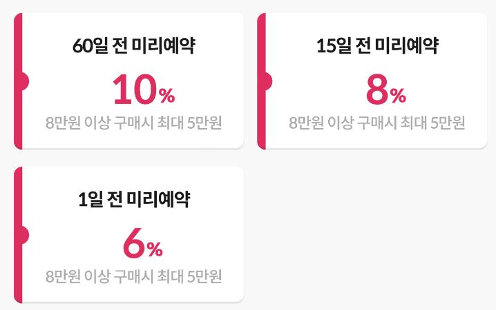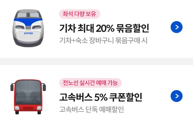 할인 품목 : 숙박업체, 기차, 렌터카 등