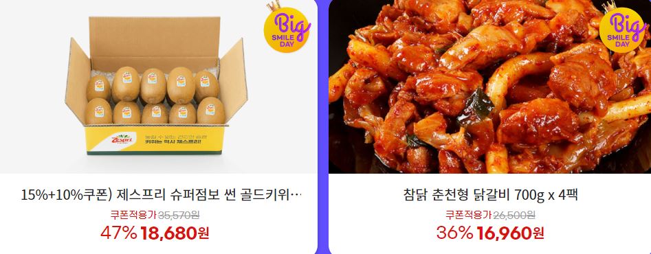 할인 품목 : 햇반, 닭갈비, 떡 등