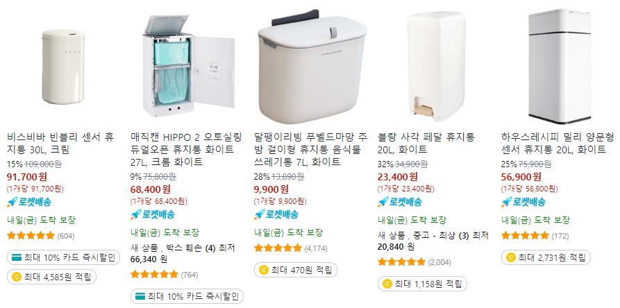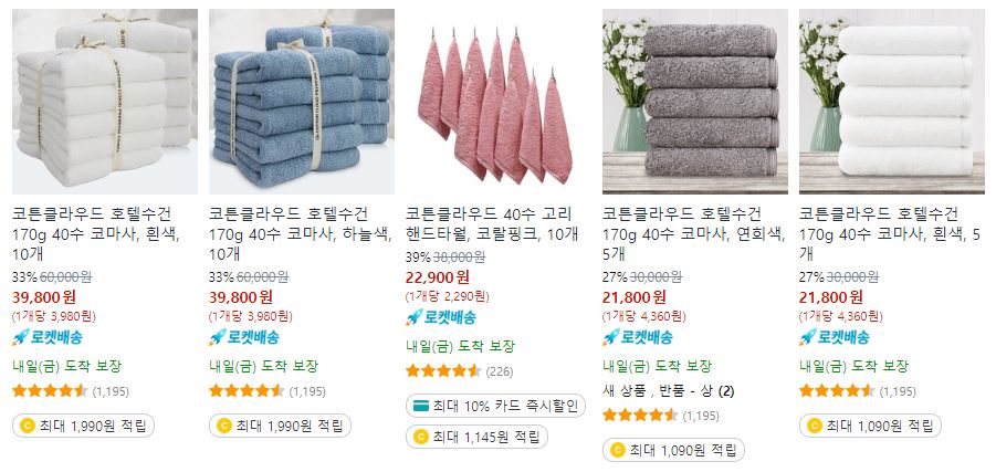 할인 품목 : 수건, 샤워기, 휴지통 등