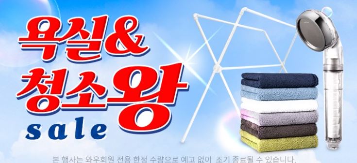 할인 품목 : 수건, 샤워기, 휴지통 등