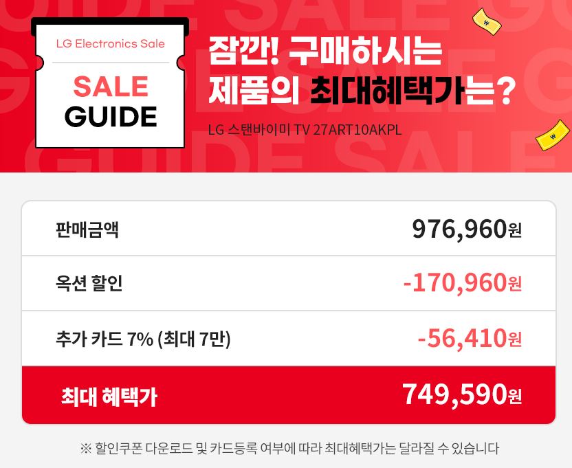 LG전자 스탠바이미TV 27ART10AKPL 할인 정보 포스팅입니다.
