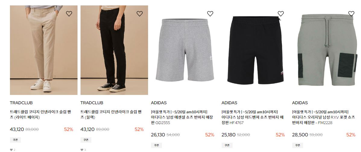 할인 품목 : 티셔츠, 팬츠, 신발 등