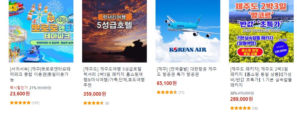 쿠팡 다양한 여행 상품을 할인 판매하네요.