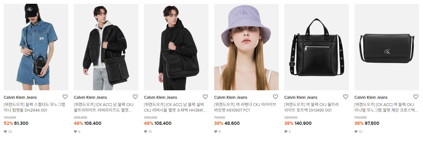 캘빈클라인진 다양한 제품을 할인 판매하네요.