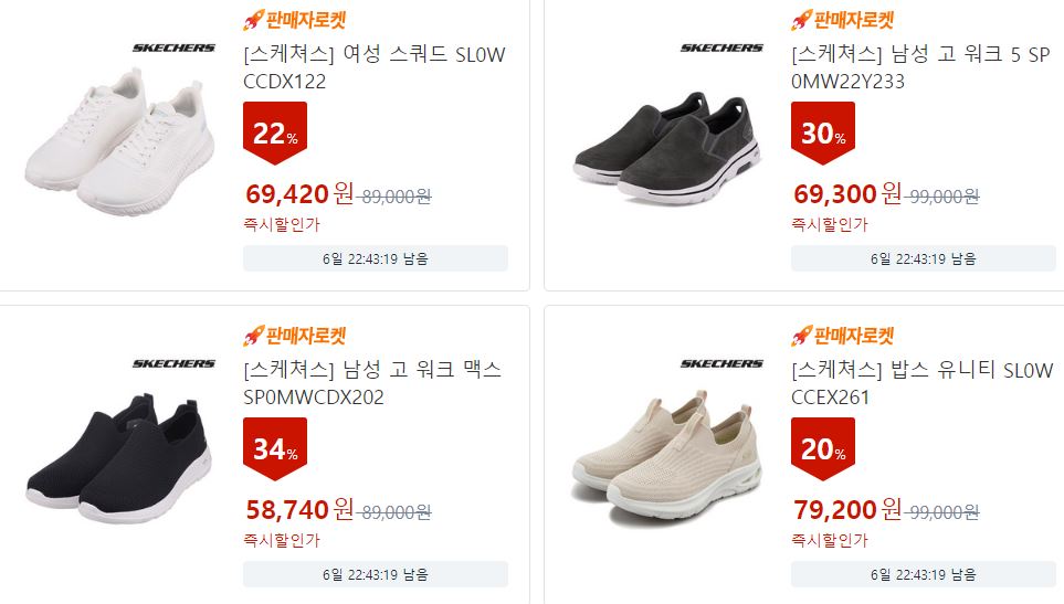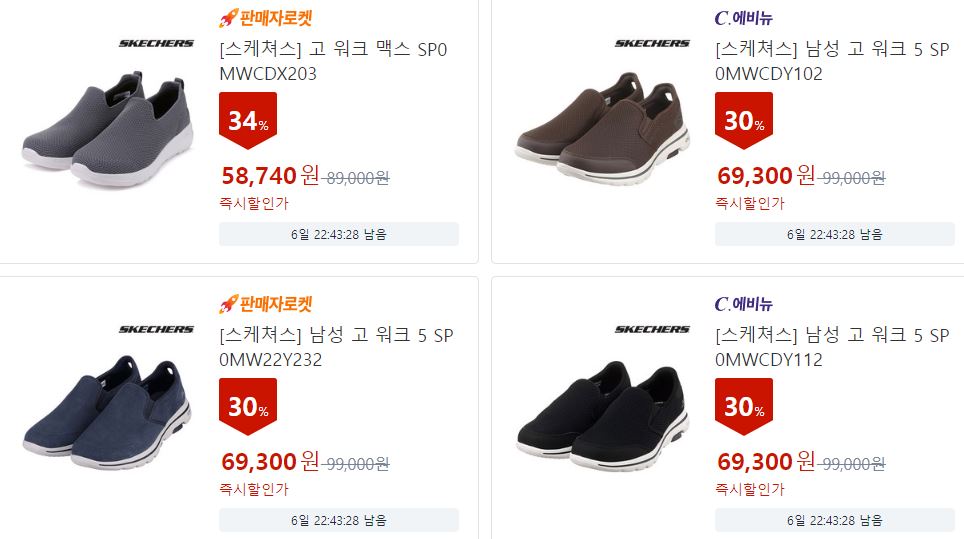 스케쳐스 다양한 제품을 할인 판매하네요.