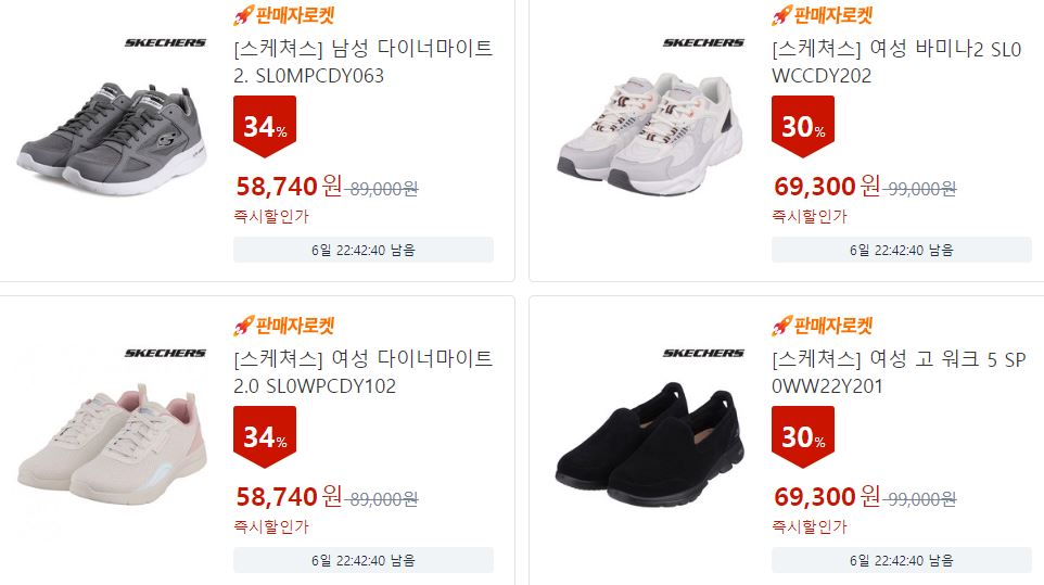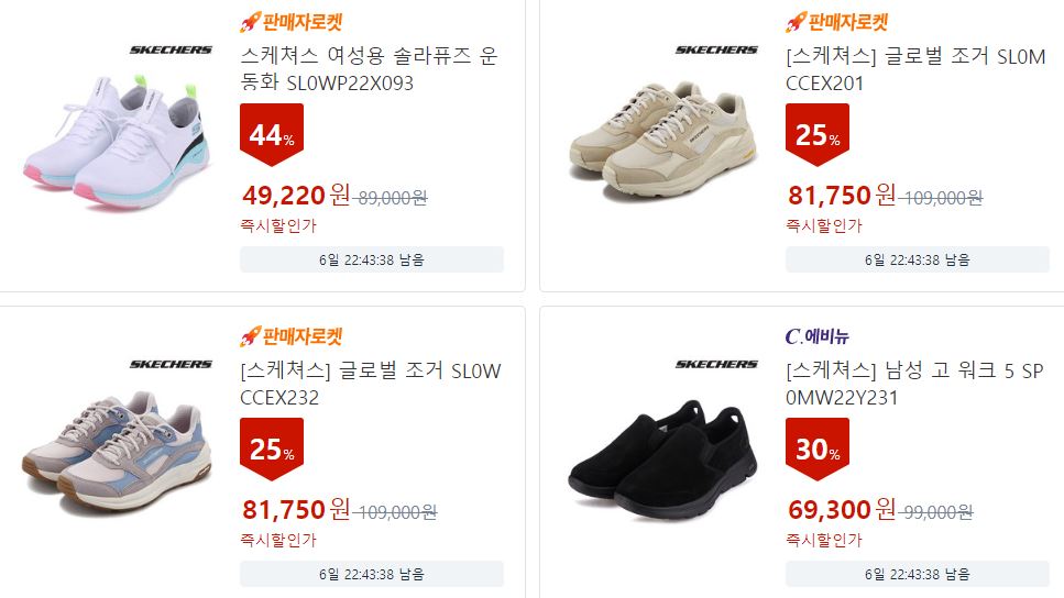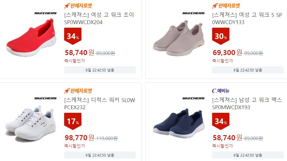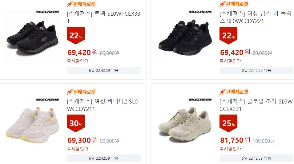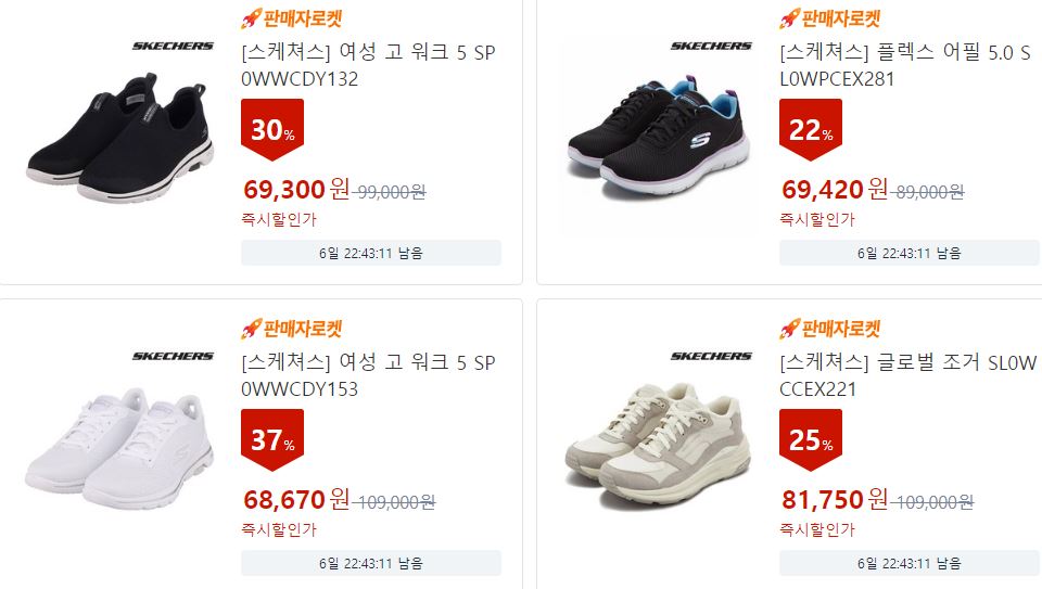 스케쳐스 다양한 제품을 할인 판매하네요.