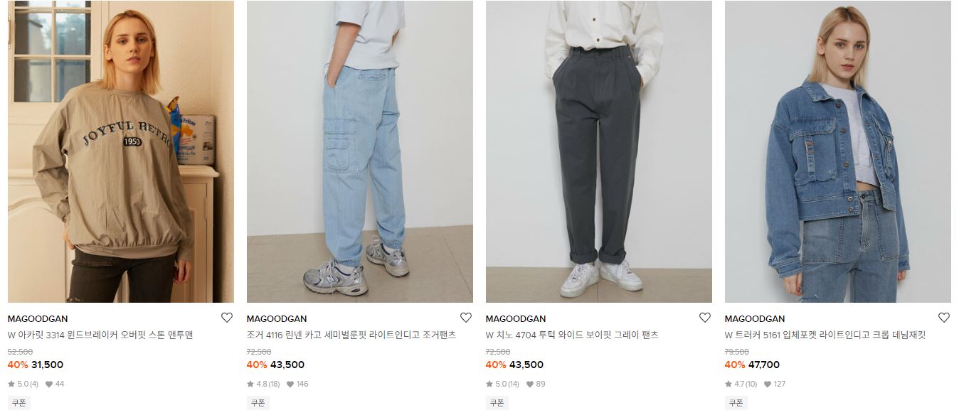 할인 품목 : 티셔츠, 팬츠 등