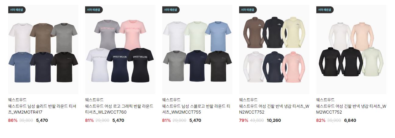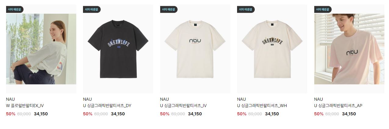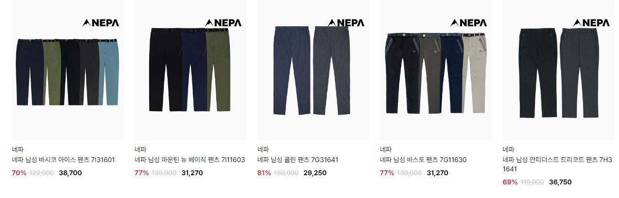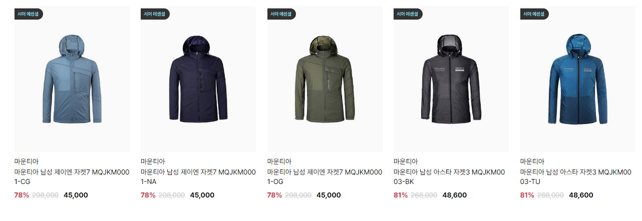 할인 품목 : 자켓, 티셔츠, 팬츠 등