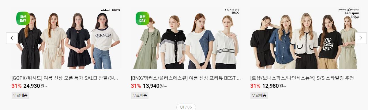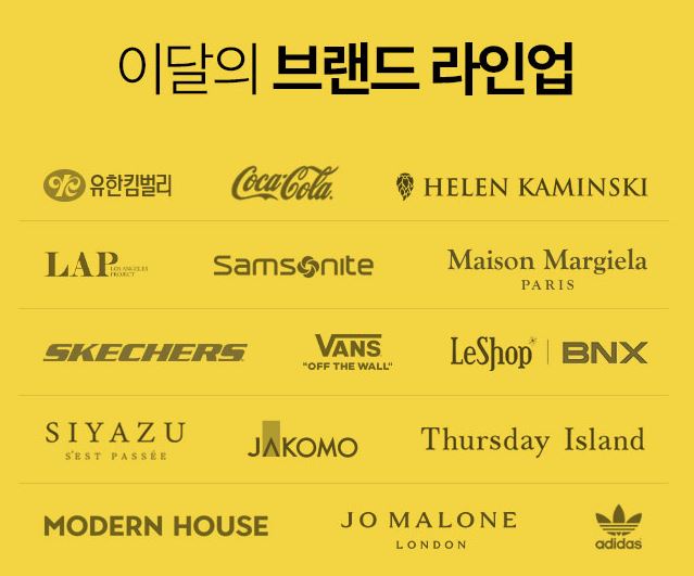 할인 품목 : 의류, 식품, 가방 등