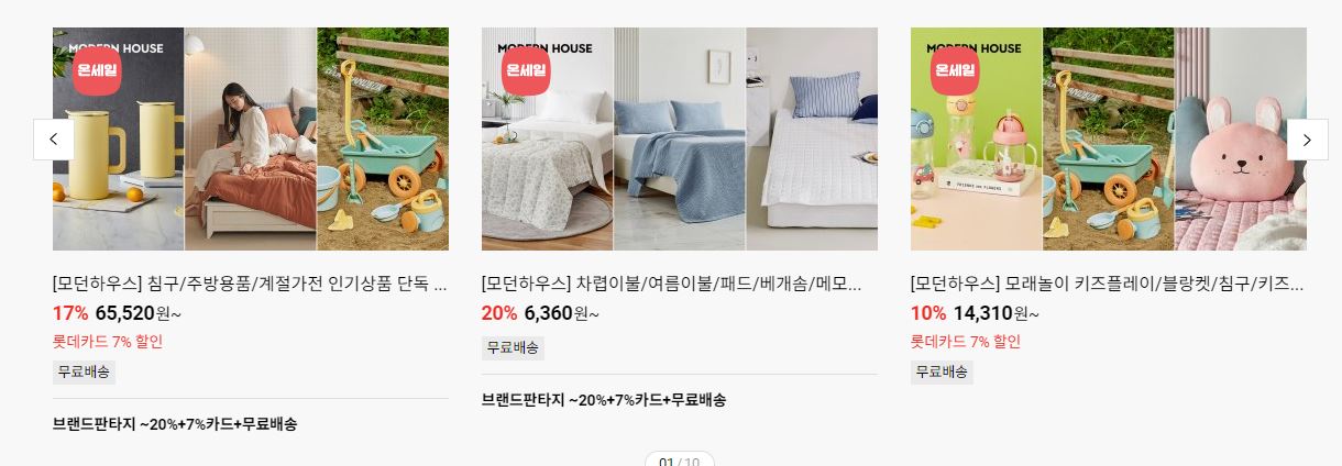 롯데온 다양한 제품을 할인 판매하네요.