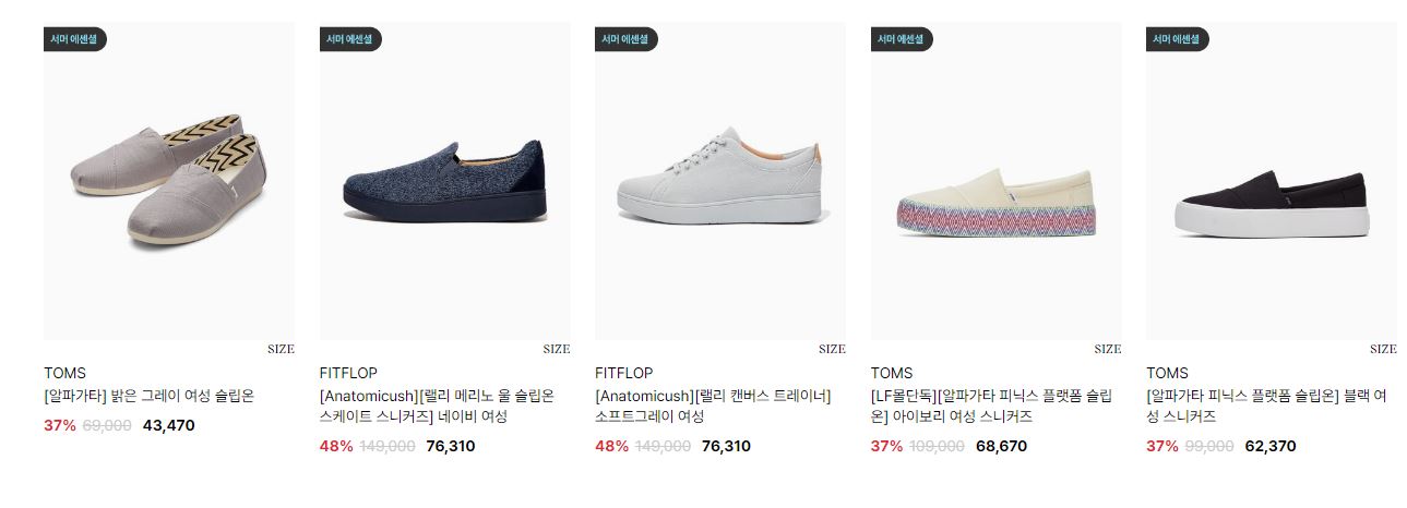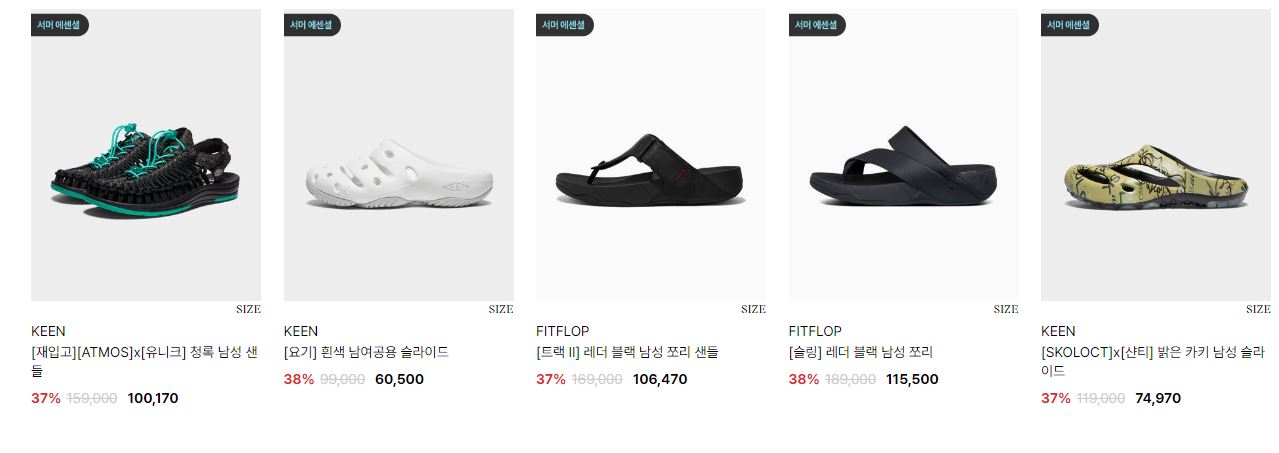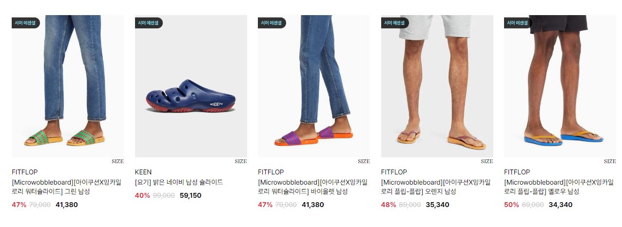 할인 품목 : 슬리퍼, 샌들, 운동화 등