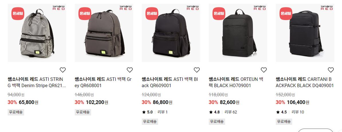 할인 품목 : 백팩, 캐리어 등