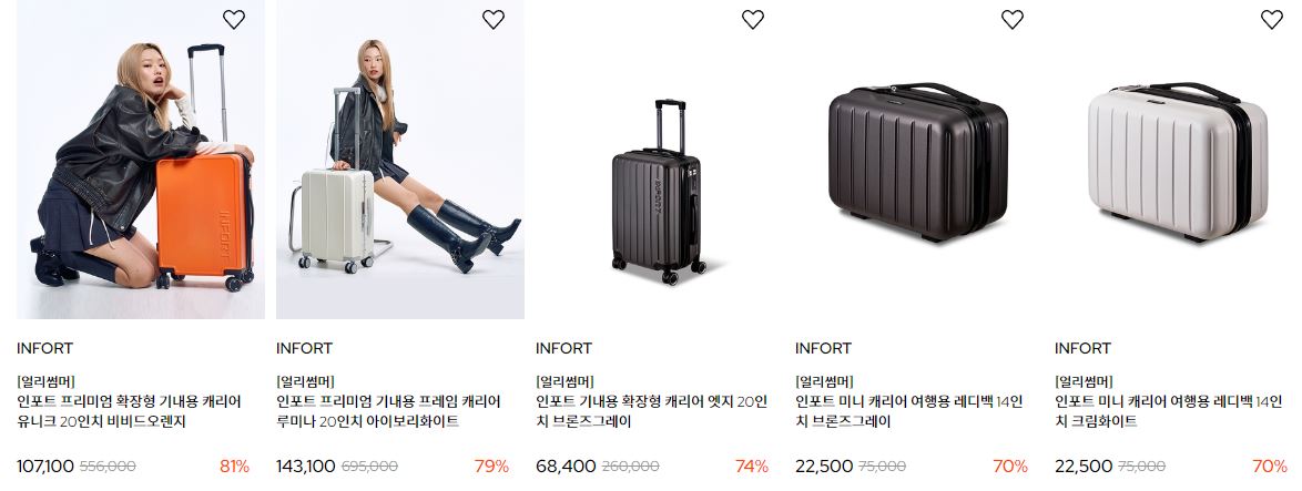 할인 품목 : 컵, 선풍기, 캐리어 등