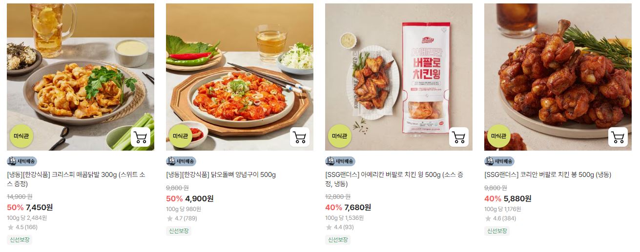 할인 품목 : 아이스크림, 비빔면, 치킨윙 등