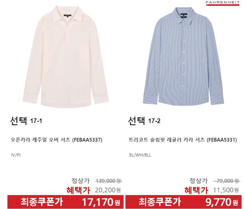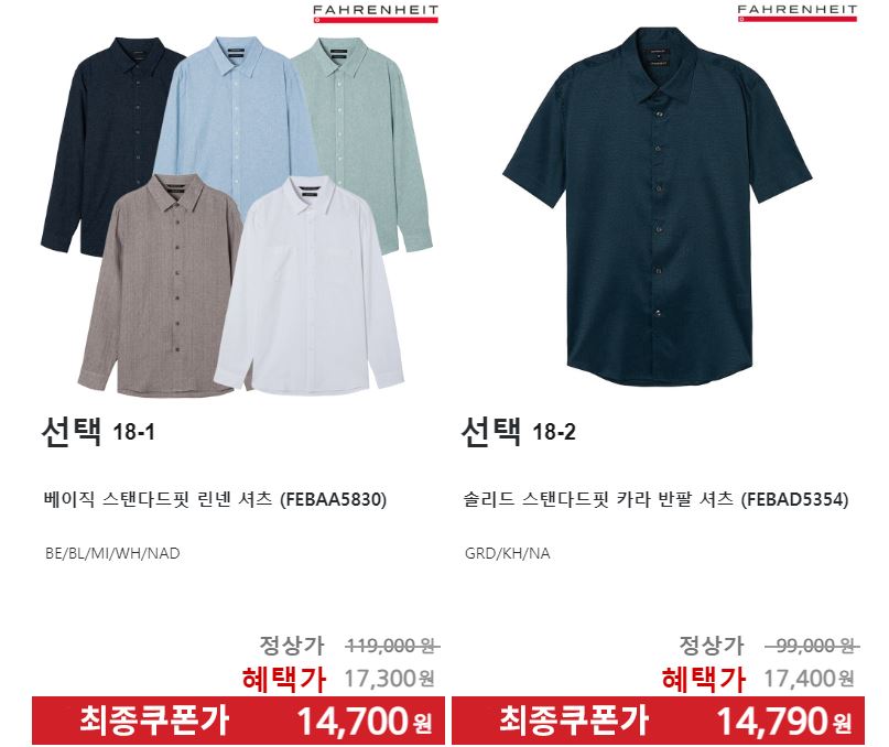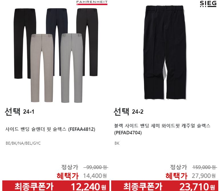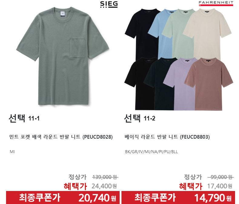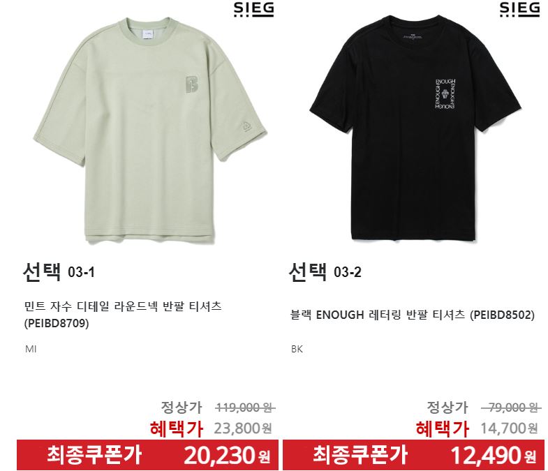할인 품목 : 티셔츠, 팬츠, 셔츠 등