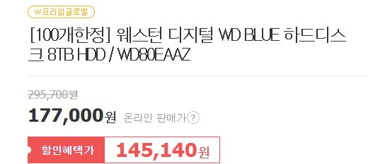 웨스턴 디지털 WD BLUE 하드디스크 8TB HDD 할인 정보 [링크]