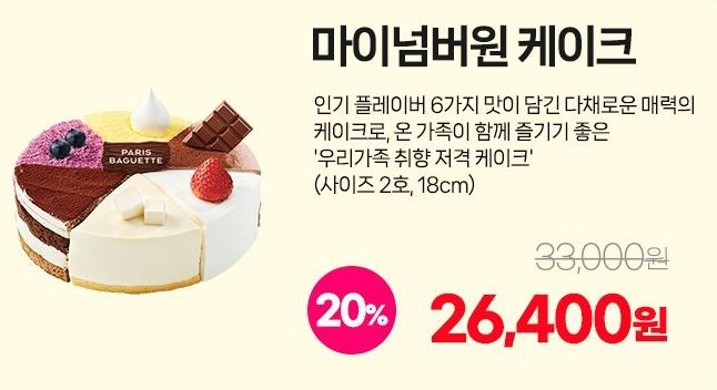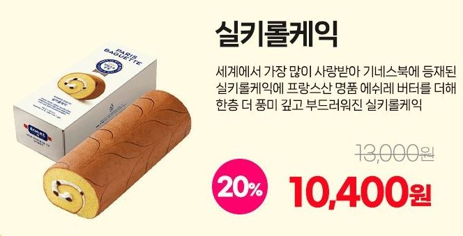 할인 품목 : 실키롤케익, 마이넘버원 케이크 등
