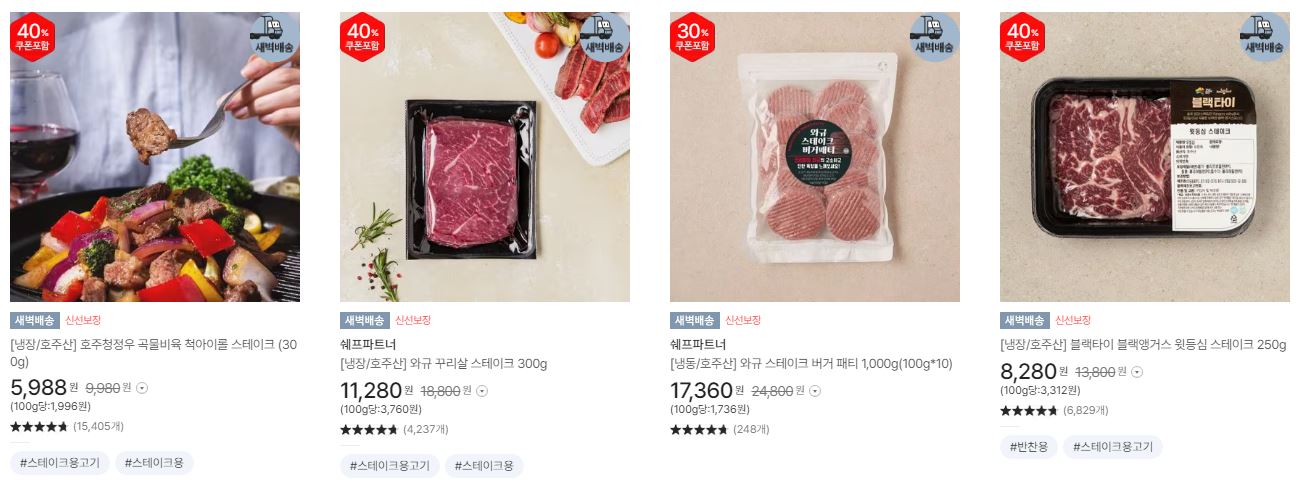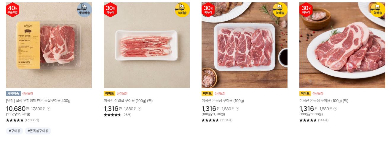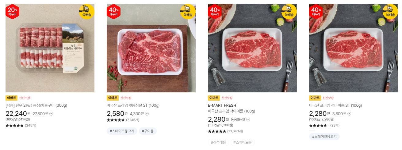 할인 품목 : 우대갈비, 차돌박이, 새우 등