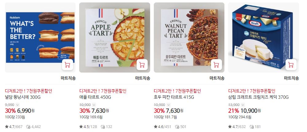 할인 품목 : 마카롱, 타르트, 케익 등