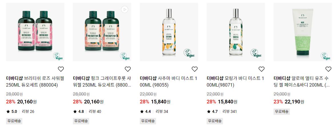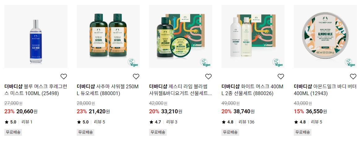 할인 품목 : 바디로션, 샤워젤, 바디미스트 등