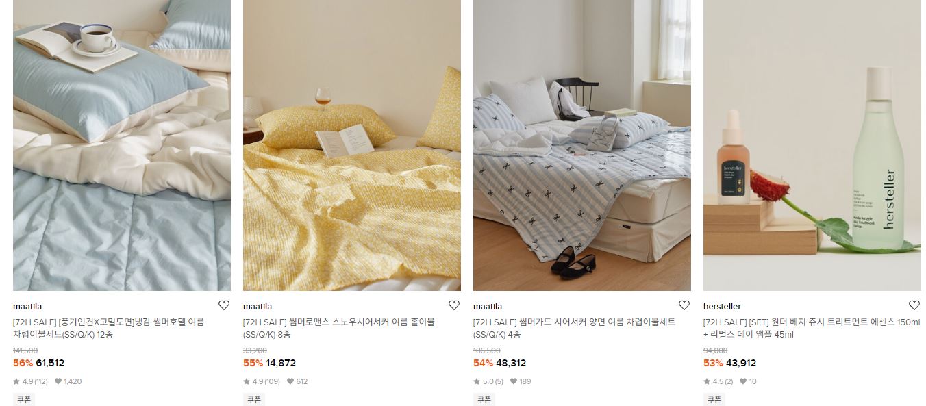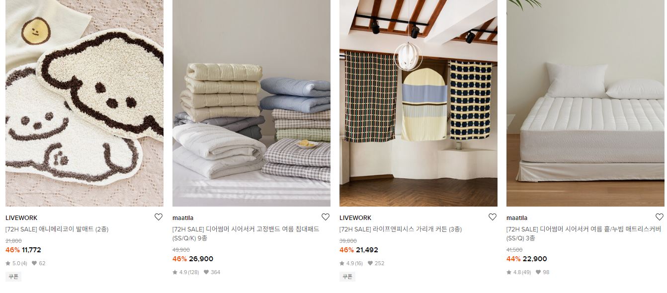 할인 품목 : 화장품, 이불, 주방용품 등