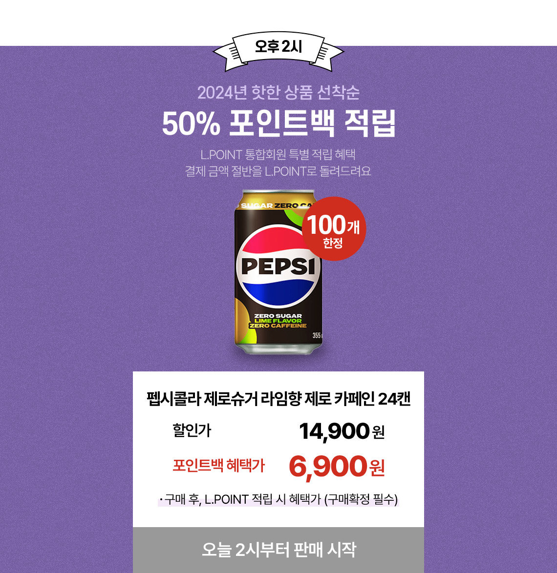 오후 2시 펩시콜라 24캔 포인트백 혜택가 6900원