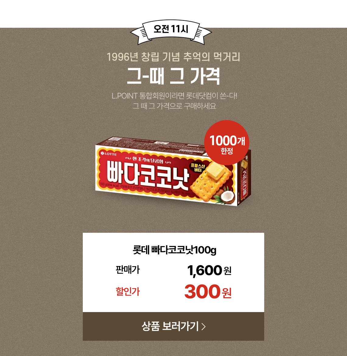 오전 11시 빠다코코낫 할인가 300원