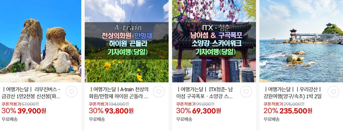 G마켓 다양한 여행상품을 할인 판매하네요.